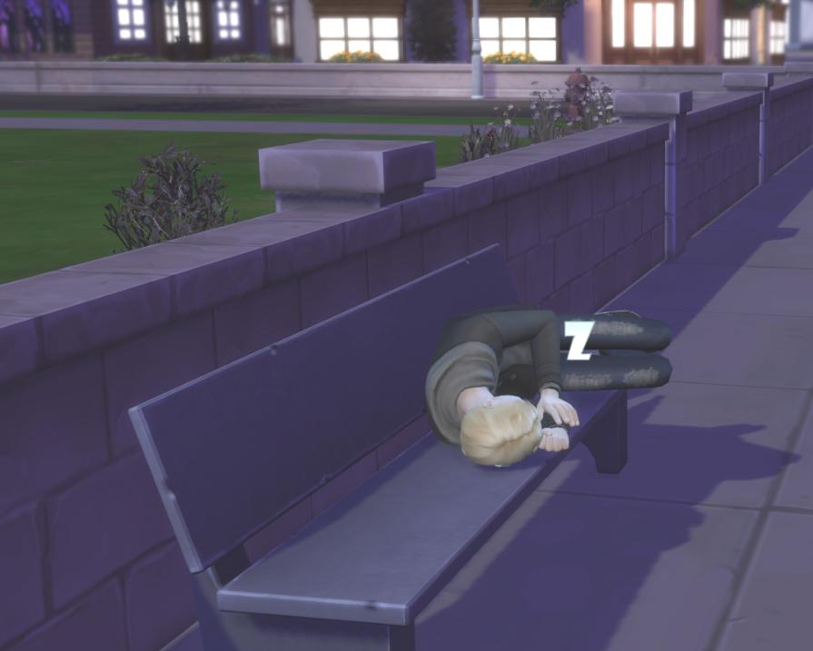 잘 데가 없어서 벤치에서 자는 션이었다....